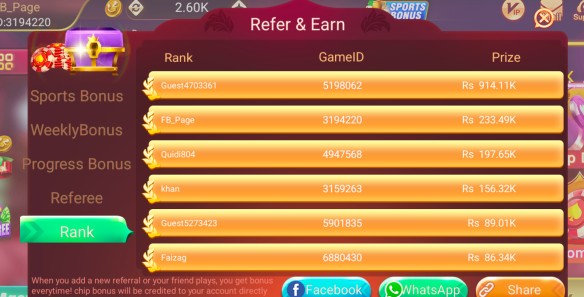 Daily Bonuses & Rewards – Log in daily to claim free chips, spins and festival-event bonuses. Special weekly and referral bonuses give extra cash【18†L202-L210】【27†L141-L144】.